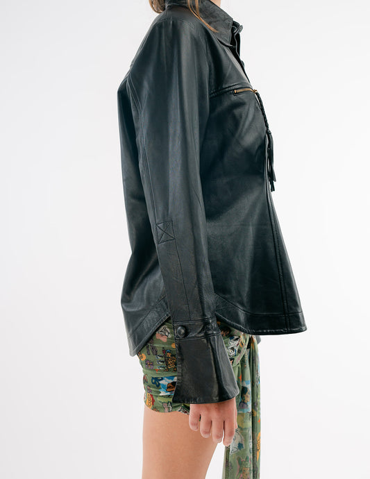 Precio habitual $ 13,500.00 MXNPrecio habitualPrecio unitario porPrecio de oferta $ 13,500.00 MXNMonica Button-Down Leather Shirt - Black